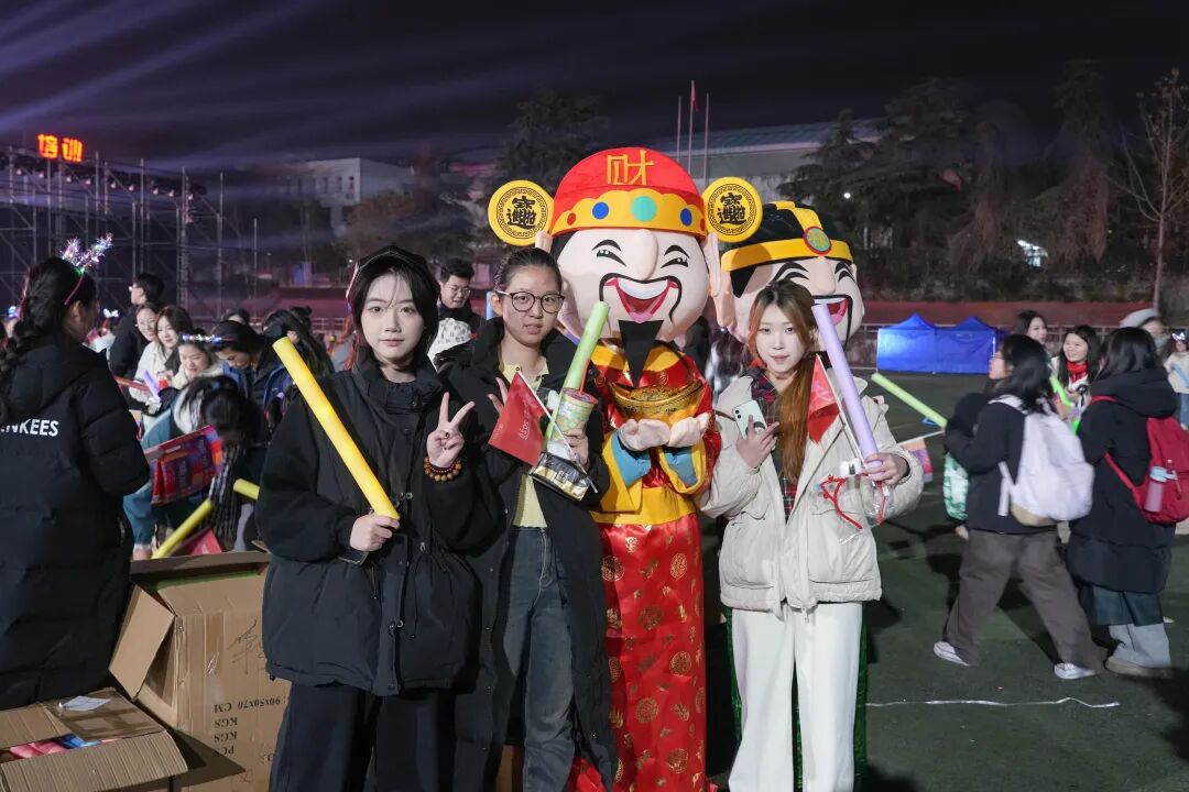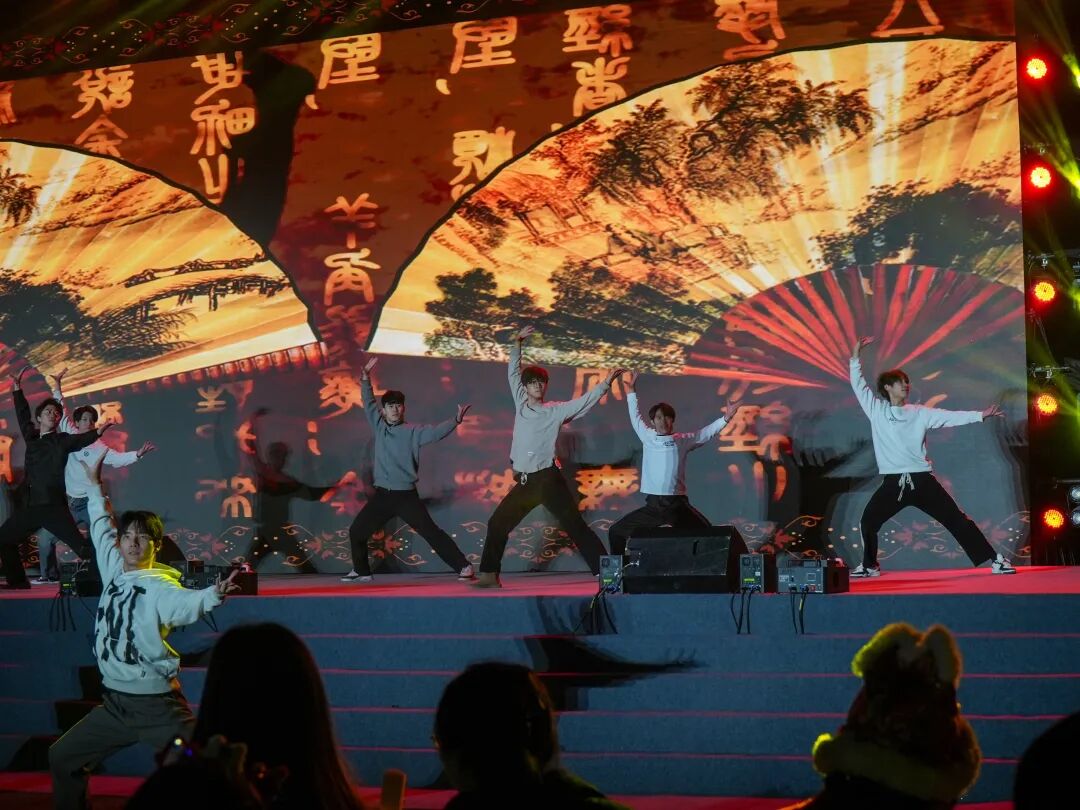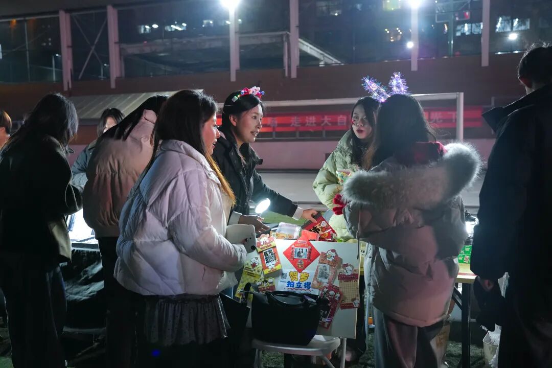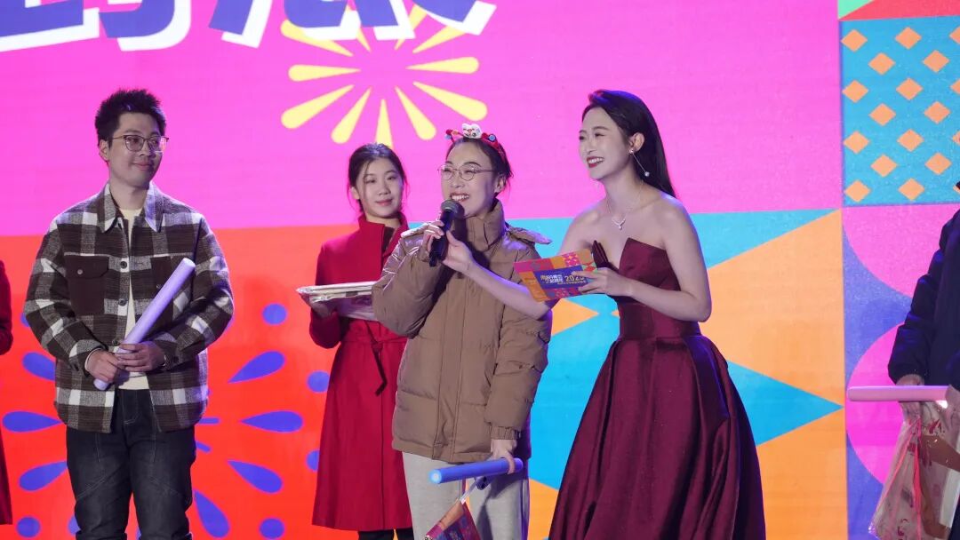 为进一步增强新年仪式感,晚会现场还设置了节庆版文创集市,不仅有贺岁主题文创设计、原创窗花、精美手工饰品、陶瓷手作、可爱摆件等,更有经典小吃、暖食热饮,为跨年增添温暖熨帖的美好体验。各大社团也华丽登场,街舞、汉服秀、国潮原创动漫人物cosplay巡游......师生们在沉浸式体验中释放青春活力。晚会还设计了游戏抽奖环节,精美的新年礼物让现场气氛持续升温。
