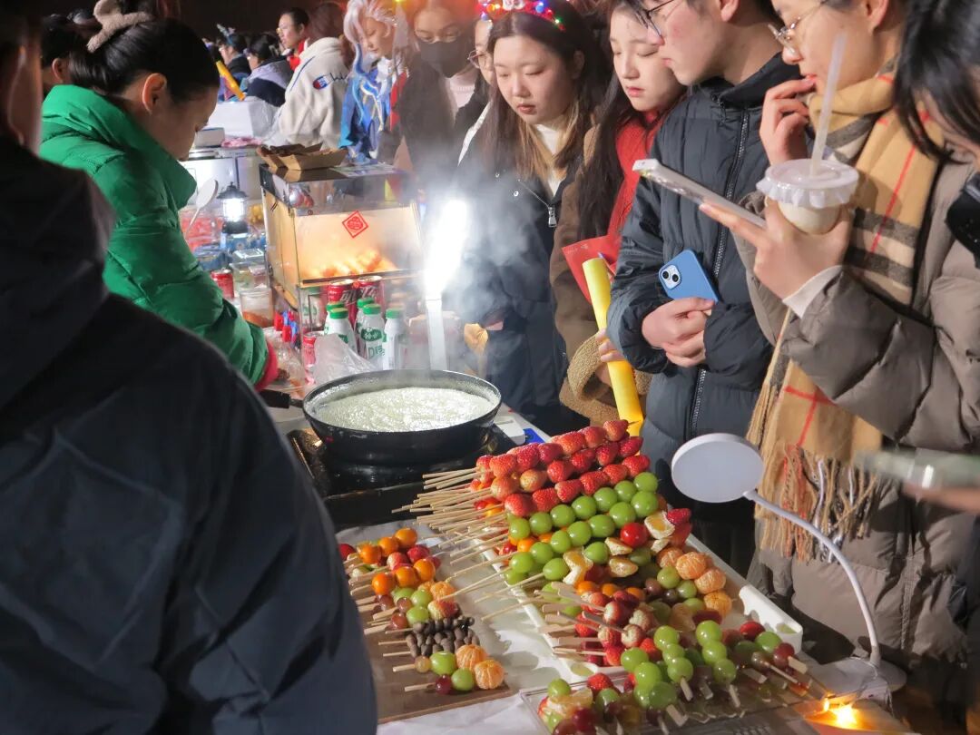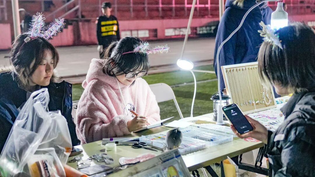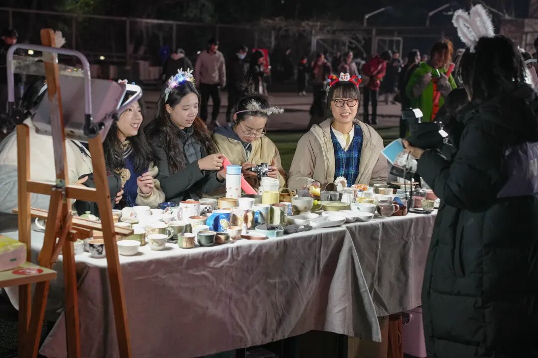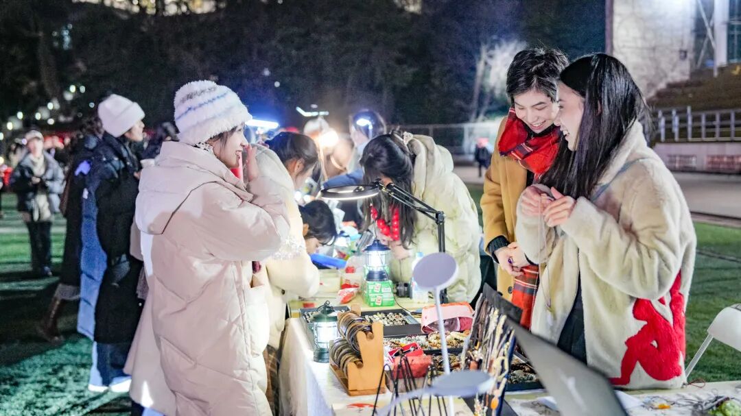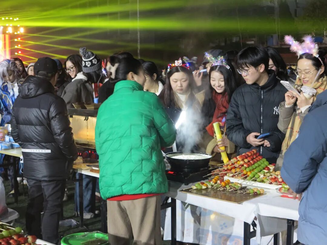 为进一步增强新年仪式感,晚会现场还设置了节庆版文创集市,不仅有贺岁主题文创设计、原创窗花、精美手工饰品、陶瓷手作、可爱摆件等,更有经典小吃、暖食热饮,为跨年增添温暖熨帖的美好体验。各大社团也华丽登场,街舞、汉服秀、国潮原创动漫人物cosplay巡游......师生们在沉浸式体验中释放青春活力。晚会还设计了游戏抽奖环节,精美的新年礼物让现场气氛持续升温。