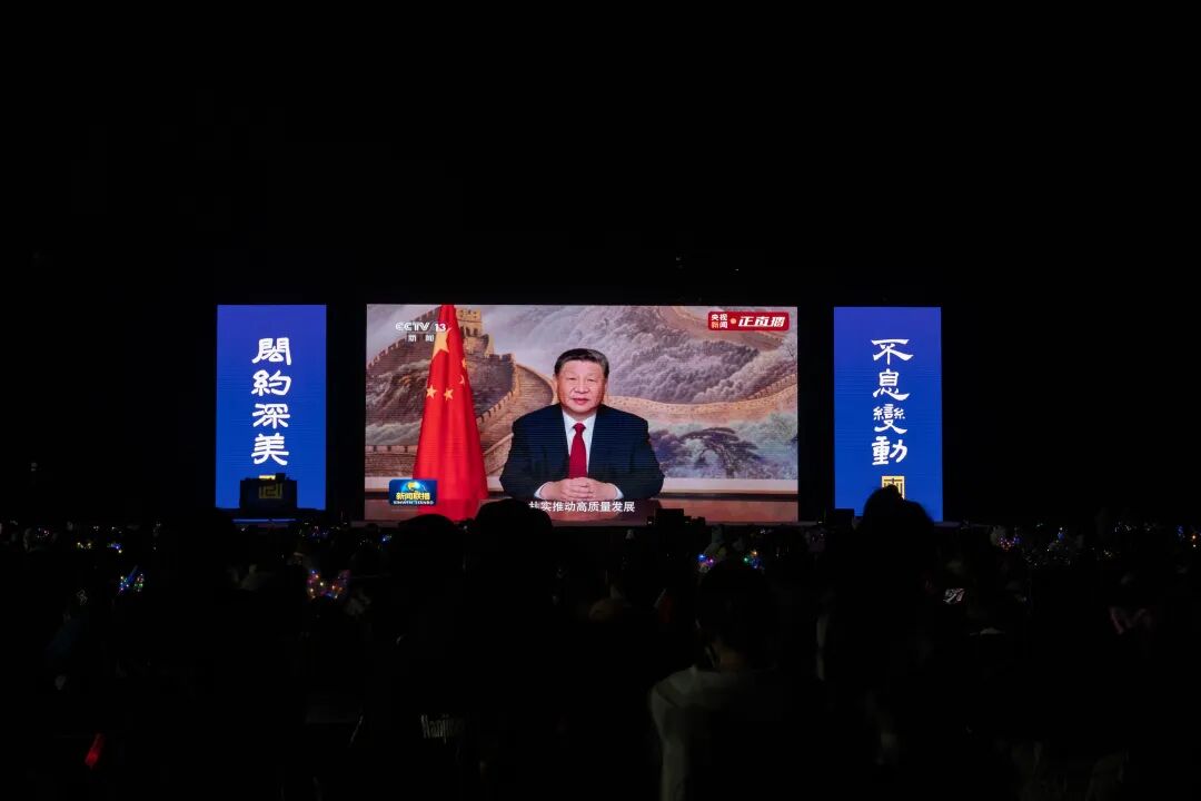 晚会伊始,现场师生共同观看国家主席习近平发表二〇二五年新年贺词,深入学习和感受贺词的深刻含义和磅礴力量。